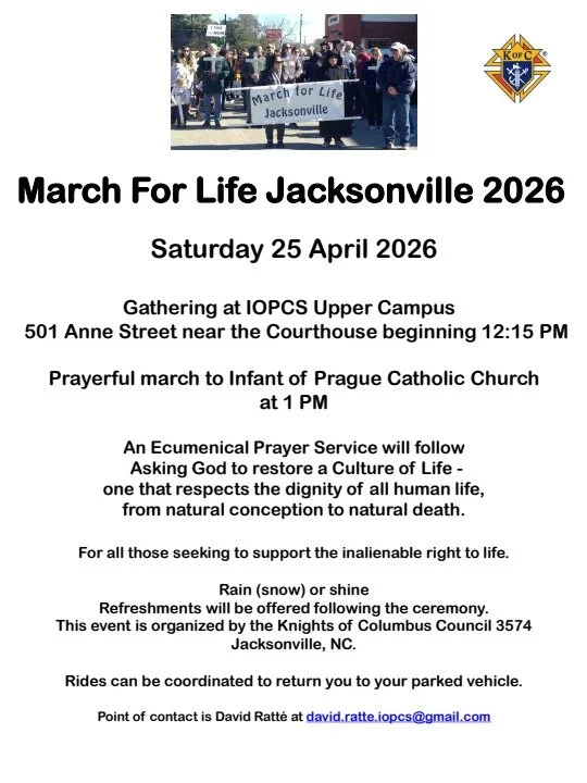 March For Life 2026 Saturday, April 25, 2026 12:00 PM 4:00 PM Hope First 3280 Henderson Drive Jacksonville, NC, 28546 United States (map) Google Calendar ICS